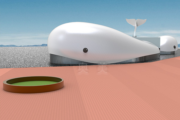 此為惱包奧萊水世界項目,此屋面系統采用的是新型建筑材料金屬復合瓦鋪設...